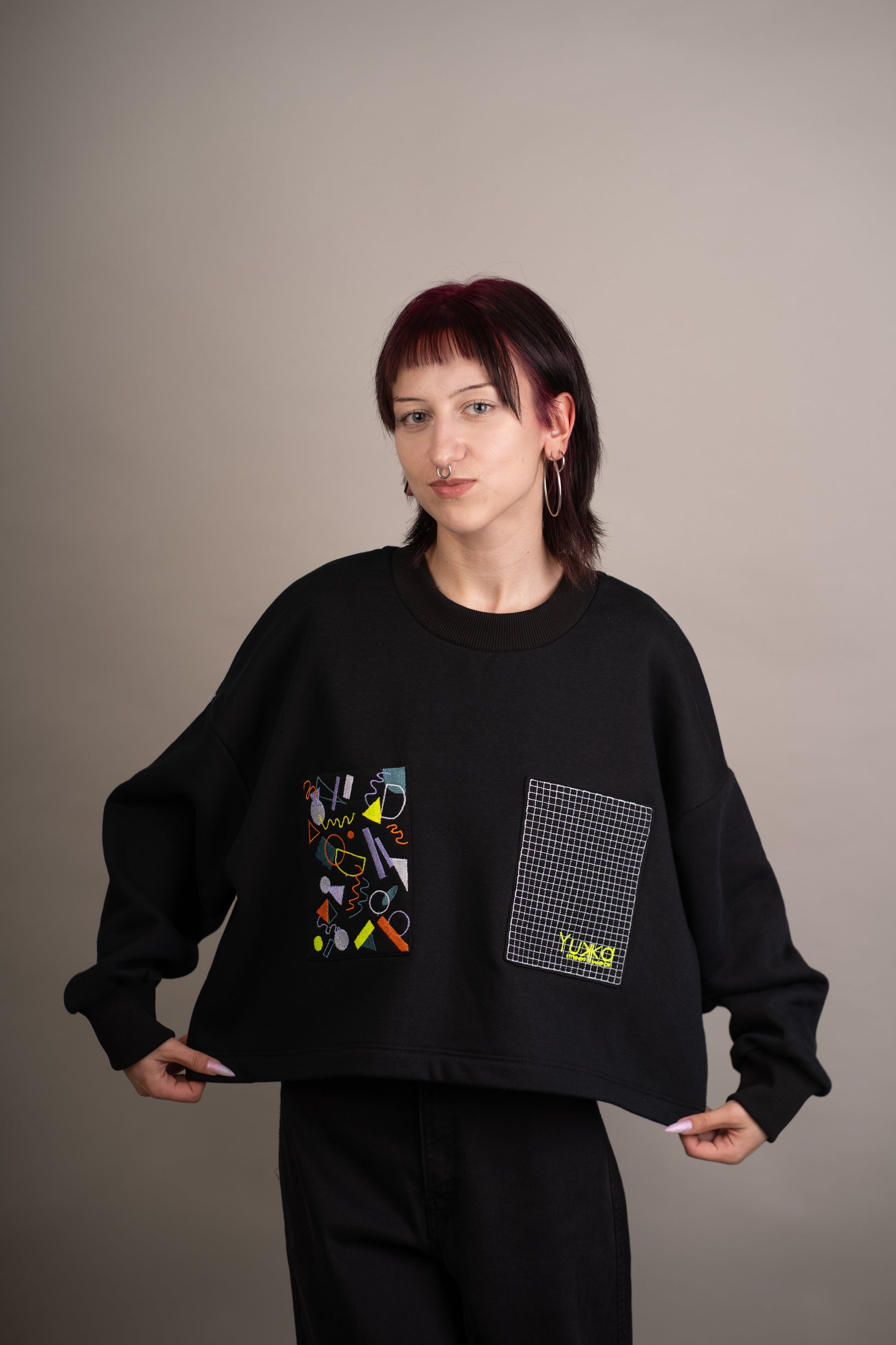 Long-sleeved sweatshirt with ribbing at neck, cuffs and hemmed at waist.