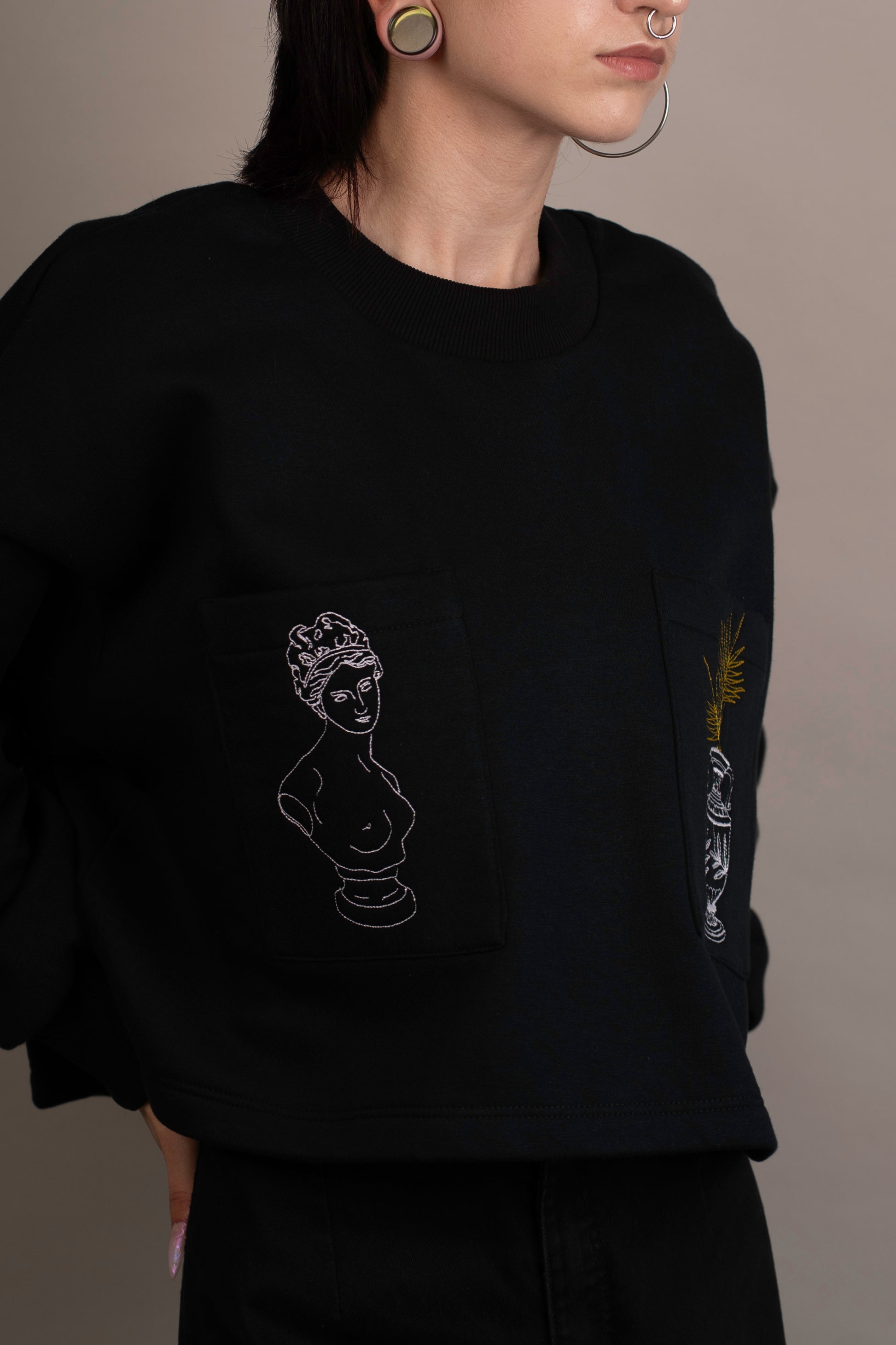 Long-sleeved sweatshirt with ribbing at neck, cuffs and hemmed at waist.